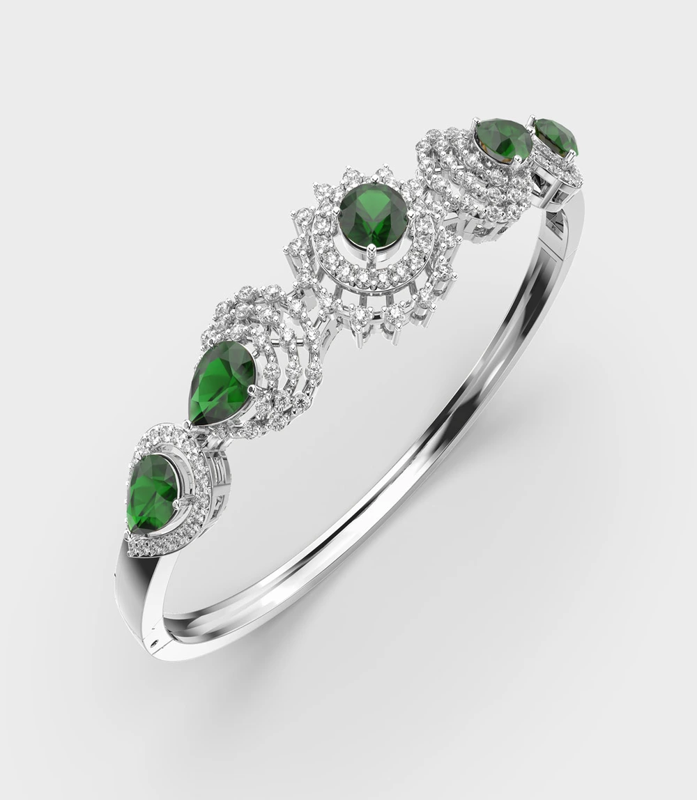 Green Stone Diamond Kada Bracelet (GB015)
